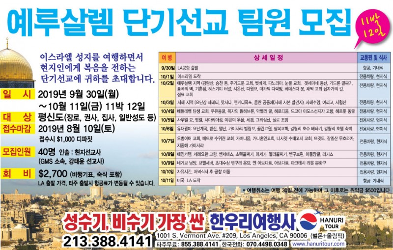 ★ 미국 전지역,북미, 중남미, 유럽, 동남/북아시아, 선교방문,고국 방문,신혼 여행,가족 여행,크르즈 관광,단체 관광, 등등 모든 항공권및 관광 패키지 상품 취급 합니다.